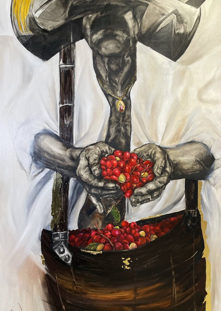 Contemporary artist Whose pictorial practice explores the body, symbol, and materiality as spaces of memory, ritual, and identity in tension with the present.