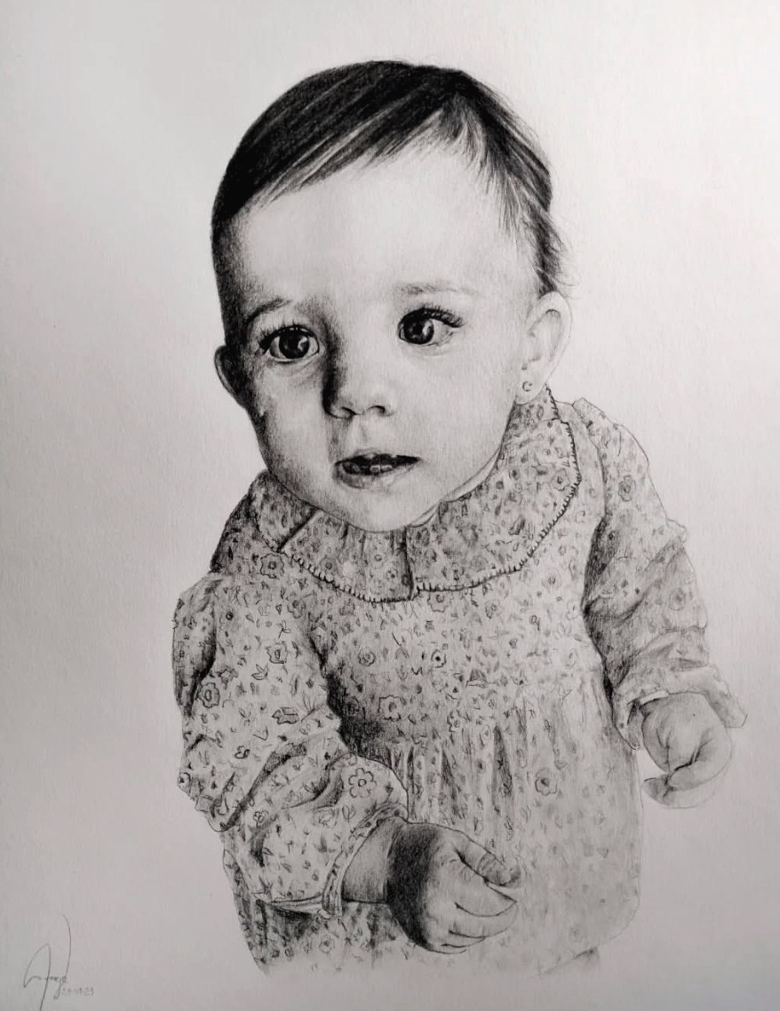 Técnica: Grafito y Acuarela sobre Papel DNS Premium, acabado natural extra blanco, 250 gramos.